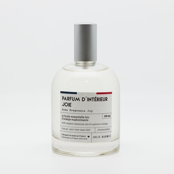Le parfum d'intérieur Joie fait partie de la gamme de 9 parfums d'intérieur bien-être de Jolis Baumes. Ils sont fabriqués à la main, de façon artisanale dans notre atelier en Auvergne. Nos parfums d'ambiance sont formulés à base d'ingrédients naturels.