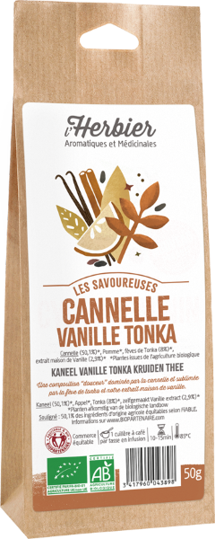 cannelle* (50 %), pomme*, fêve de tonka* (8 %), extrait de vanille maison* (3 %) (eau, vanille*, ethanol*)